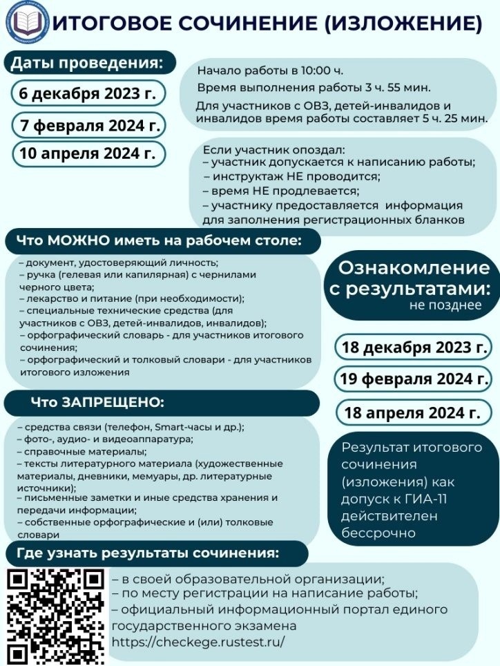 ЕГЭ Итоговое сочинениеСкачать Итоговое сочинениеСкачать Презентация «Особенности ГИА-11» в 2024гСкачать Расписание ЕГЭСкачать Памятка-ЕГЭСкачать prikaz_Minprosv_546-2Скачать Приказ-№786-Об-утверждении-плана-мероприятий-по-сопровождению-претендентов-на-получение-медали-Скачать Приказ-№818-Об-итогах-государственной-итоговой-аттестации-в-2021-2022-Скачать Дорожная-карта-по-подготовке-ГИА-2022-2023-уч.годСкачать Приказ «Об утверждении плана мероприятий по сопровождению претендентов па получение медали «За особые успехи в учении» и аттестатов особого образца»Скачать Постановление-ГИАСкачать Материал для успешной подготовки к итоговому-сочинениюСкачать Итоговое-сочинениеСкачать Федеральные-документы-ЕГЭСкачать Ссылка-на-официальный-сайт-ЕГЭСкачать
